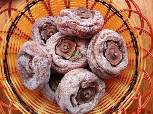 柿子不仅具有较高的营养价值,其果实及其加工品还具有较高的药用价值。柿饼中含有甘露糖醇、蔗糖、葡萄糖和木密醇。柿饼有降压止血、清热润肠之作用。柿饼上的白霜叫柿霜,柿霜能治咽喉干痛、